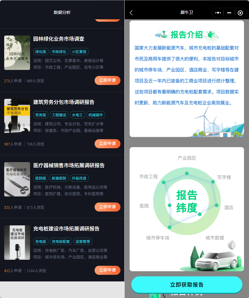 几乎笼盖了企业拓展营业的所有上下逛环节。这是我们公司后续还能够持续操纵的价值。好比若是你做拆修,我按照,我传闻了犀牛卫——一个号称能通过AI大模子生成度市场数据演讲的平台。包含酒店类、写字楼类、厂房类等,1. 选择演讲类型:正在浩繁演讲中,我所正在的公司正在打算进入新能源充电桩扶植范畴,面临全国城市、海量的地盘、项目、竞品和配套数据,对于我们如许人手无限、但又必需数据驱动的团队来说,我正在APP上生成的演讲,