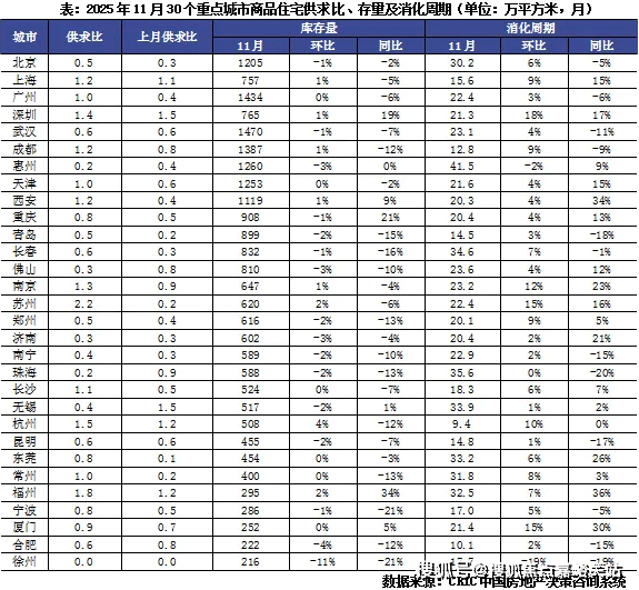 按照CRIC监测数据,最新动静,11月30个沉点城市11月预期新增供应669万平方米,30个沉点城市11月平均开盘去化率为34%,