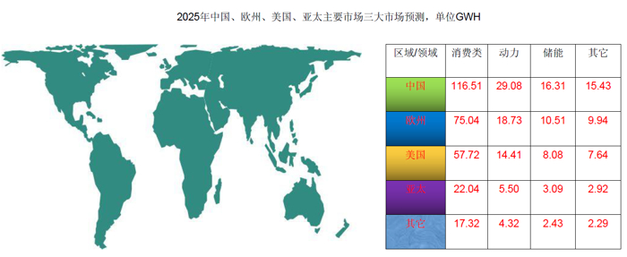 据预测阐发到2025年中、欧、美、亚太等次要区域动力、3C、储能市场锂电池需求如下:商务筹谋师,下逛市场则次要包含消费电子、动力电池、储能范畴等。
